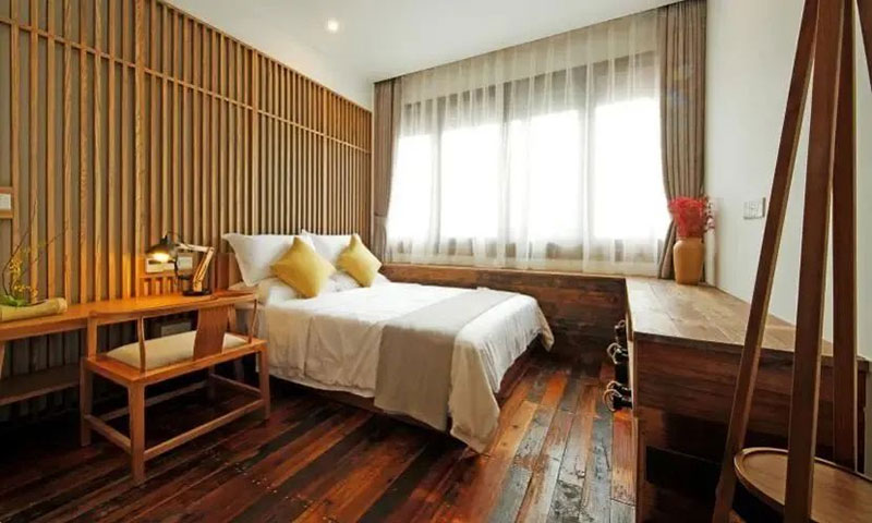 紫桃轩的美,在于房门、柜子、台子、地板都是原木制作,没有复合木的胶,却充满了本真的简单和安全,且细节处处透漏出它江南水乡的风貌。