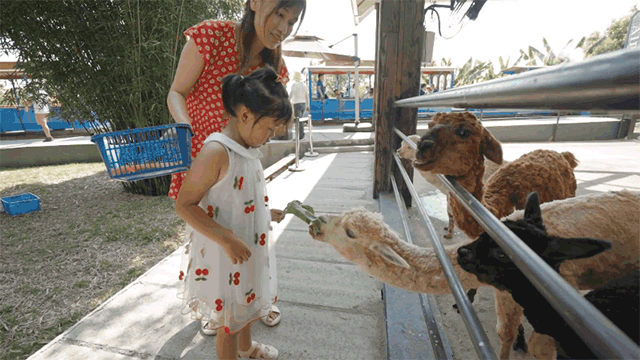 在这里小朋友可以亲手抚摸、投喂,近距离感受小动物的热情。(投喂需自费)