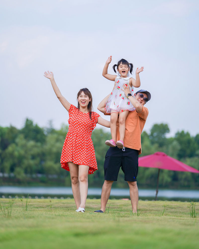 午后,牵着宝贝的手走在翠绿的大草坪上,享受慵懒的下午时光~