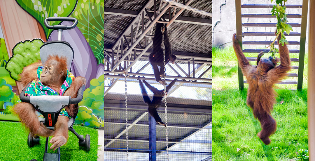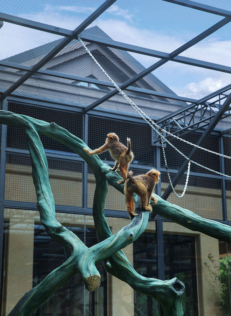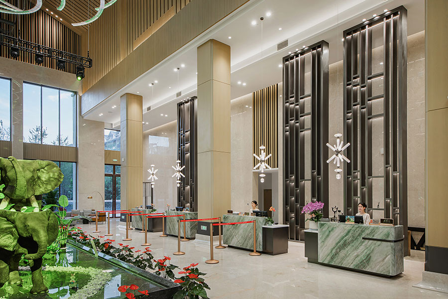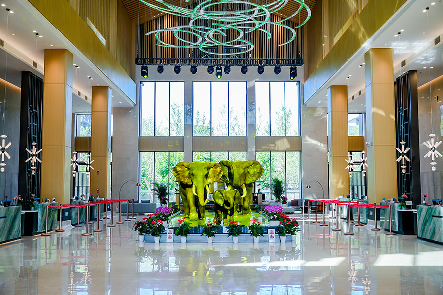 酒店规模庞大,总面积达6.6万㎡(地上4.6万㎡,地下2万㎡)。周边环绕着红毛猩猩、金丝猴、环尾狐猴等保护动物,它们或攀爬嬉戏,或悠然漫步,展现出一幅和谐共生的自然画卷哈!