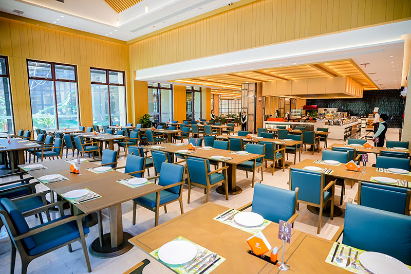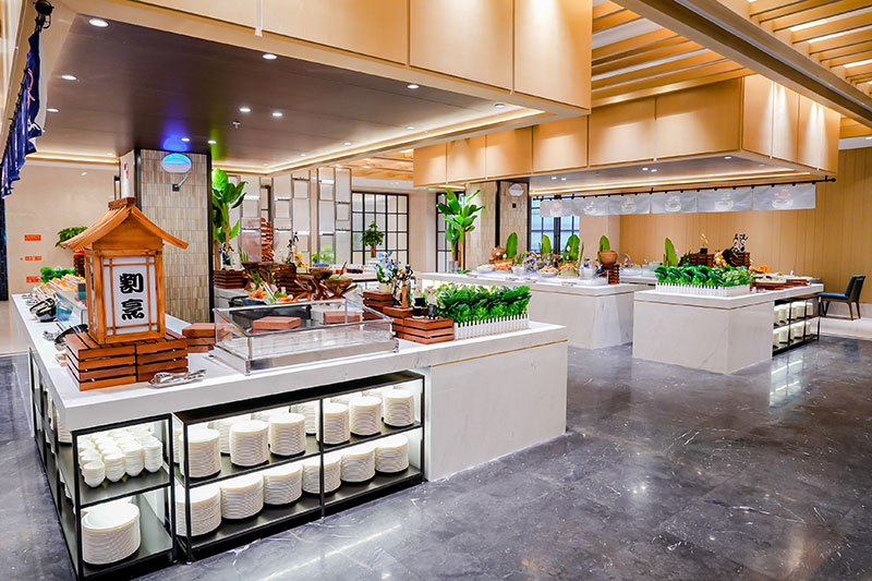 全景自助餐厅,让你一边品尝美食,一边欣赏窗外的自然美景。