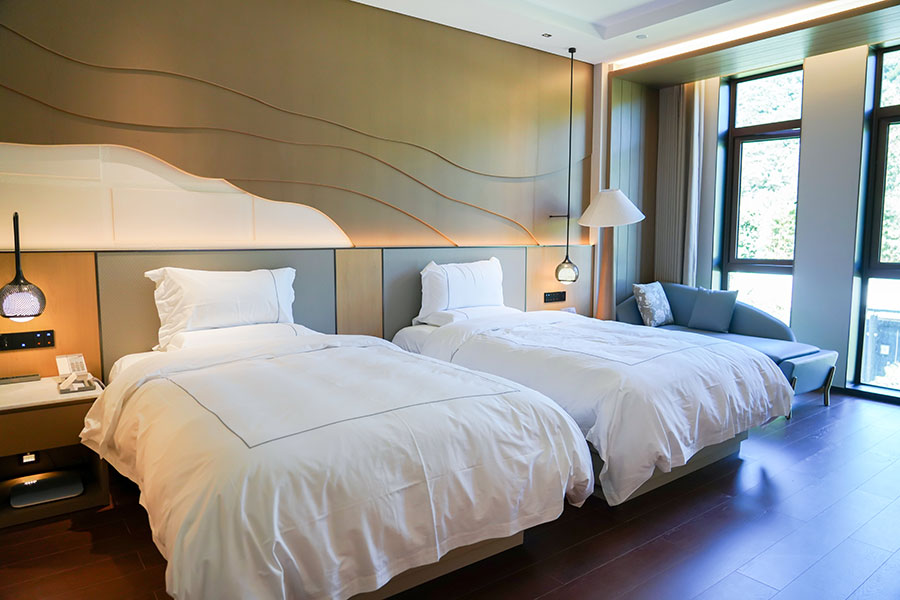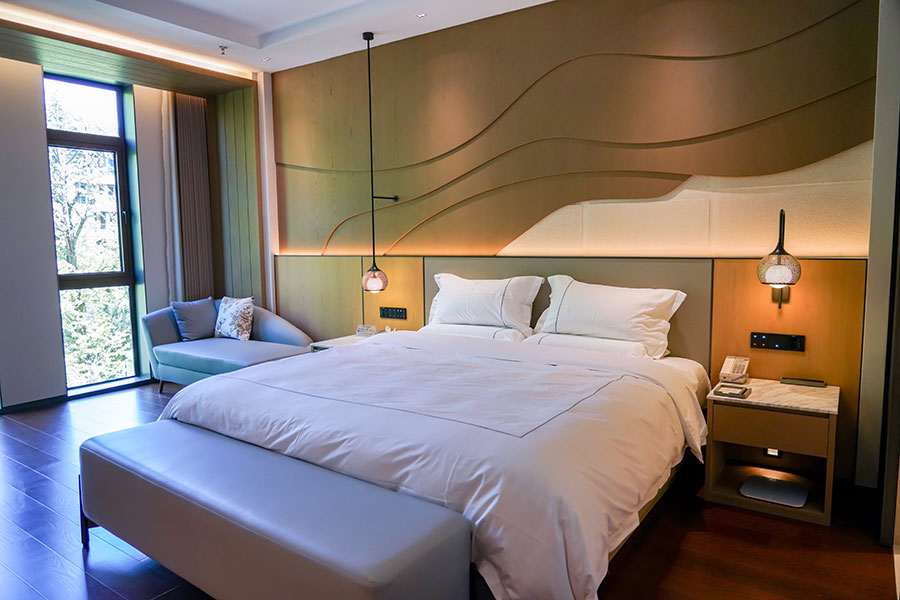 客房均配备高品质床品、定制香氛与智能家居设备,让你在充满野性的氛围中尽享舒适与便捷。