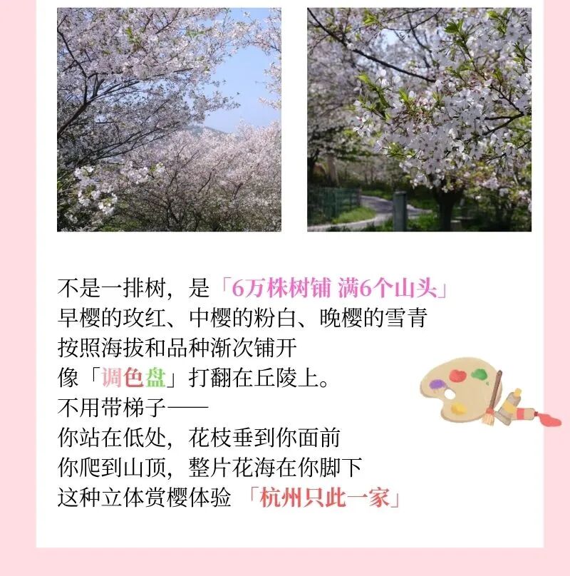 浙江超大规模【杭州樱花园】,千亩山地樱花海,6万株樱花、30余个品种,承包春日浪漫!更有萌宠乐园、露营野餐、游乐设施等你解锁!