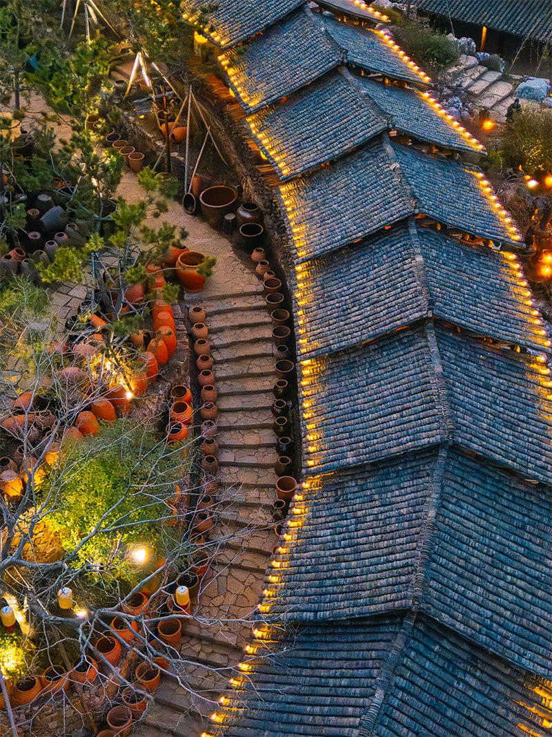 窑厂度假酒店静立于窑湖小镇景区外围,以千年紫砂陶窑文化为底蕴,以 “窑” 元素为主题贯穿设计始终,将自然生态与人文艺术巧妙结合。