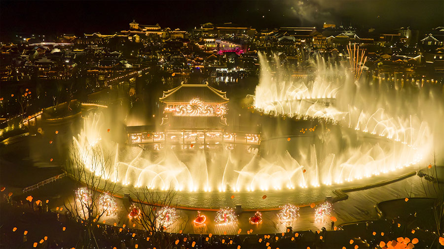 窑湖小镇依托在地资源和地域特色文化,引进优质演艺资源,将为到访的游客呈现各种特色主题演出,后续也将推出更加别具特色的主题文化演艺,丰富小镇夜游沉浸式体验。