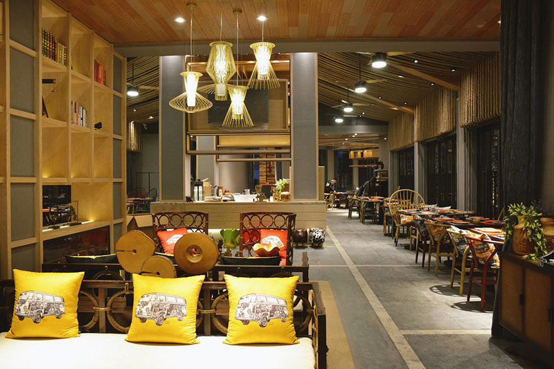 营地主楼内的有盐餐厅,采用美国乡村风格设计,配有100个餐位,可提供早自助、午零点、晚零点及酒水服务。
