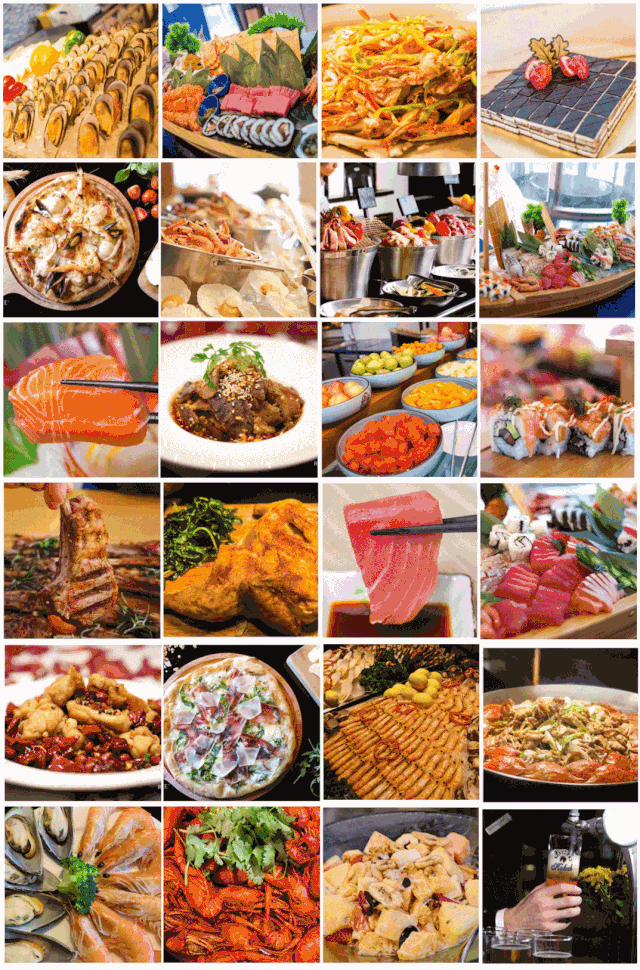 各种海鲜、美味中式小食、精致的日料、各式甜品...